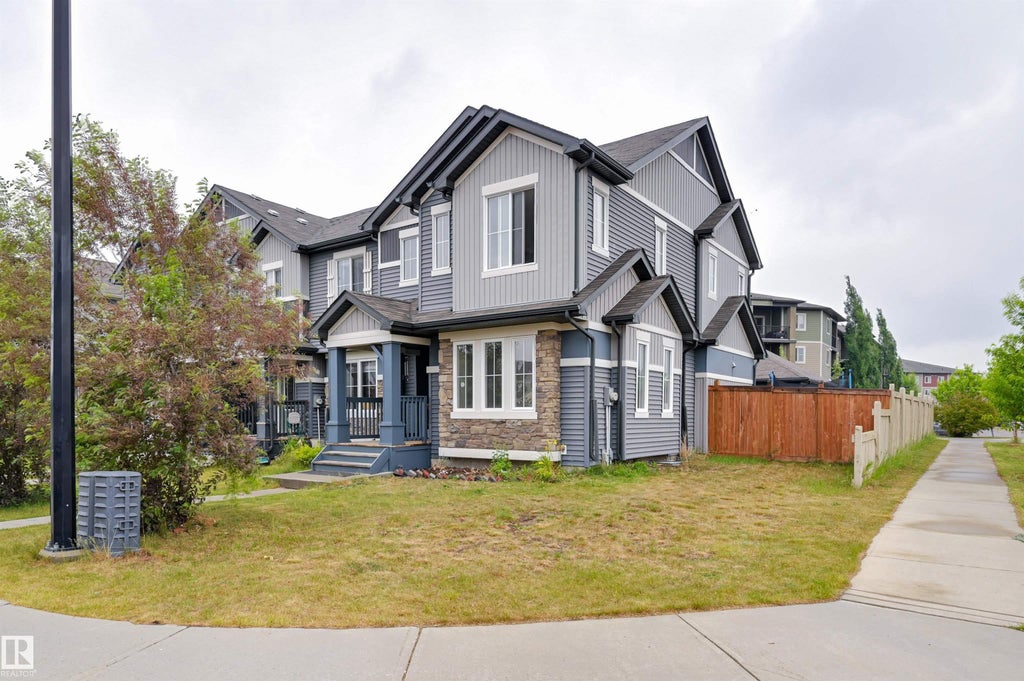 NO CONDO FEES -Located in the vibrant community of Walker, this end unit townhouse sides onto a beautiful greenspace with direct access to walking trails. The open-concept main floor features a bright living area that flows into the kitchen with a large island, pantry, & a dining nook overlooking the deck & backyard—perfect for family living. Enjoy the convenience of main floor laundry, a back entry with mudroom space, & a 2-piece powder room. Upstairs, the spacious primary suite offers a walk-in closet & a 4-piece ensuite. Two additional spacious bedrooms (second with walk-in closet) & a 4-piece bath. The unfinished basement provides space for a future 4th bedroom and rec room, or two additional bedrooms plus a full bath (rough-in plumbing in place). A double detached garage completes the package. Located just down the street from all major amenities, walking distance to schools & parks, & with quick access to the Henday & Whitemud. A fantastic opportunity in an even better community.